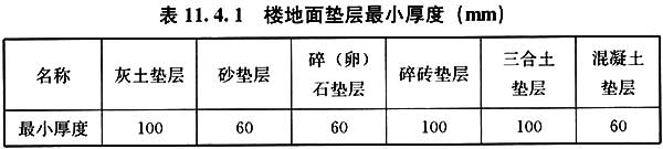 11.4.1??樓地面墊層出現(xiàn)起殼、碎裂等損壞,可采用局部修補,其墊層厚度應與原墊層相同,但樓地面墊層最小厚度不得小于表11.4.1的規(guī)定。