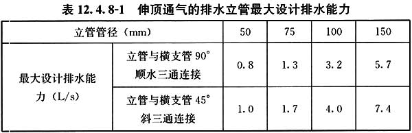 ????1??伸頂通氣的排水立管的最大排水量不得大于表12.4.8-1的規(guī)定。